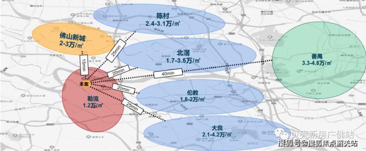 滨水新城与顺德北部各镇街及番禺仅相距40分钟车程内,目前价差已达1~3.6w/㎡;15分钟即达佛山新城,与周边区域对比,现处于价格洼地,升值潜力巨大。