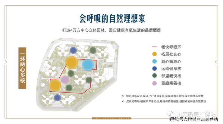 点状式布局,确保户户单边位,每栋保持宽楼距,组团式园林提升观赏性