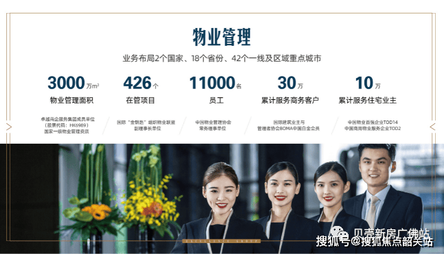 卓越物业以“核心城市-核心区域-核心物业”为标准,涵盖商务综合体、产业园综合体、国际顶级酒店等优质物业,是国家一级物业管理资质企业。