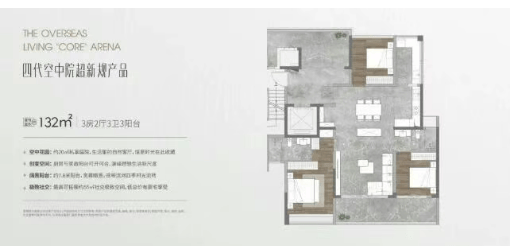 独特的户型设计:两梯两户设计,带大阳台和空中庭院,部分户型使用率高达约130%。