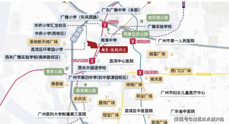 越秀珑悦西关位于广州荔湾区的河柳街,地处广州市老西关板块,交通便利,生活配套齐全。项目距离5号线和11号线的双重换乘站(中山八站)约1公里,步行至地铁西场站也仅需10分钟,交通出行极为便捷。项目的地理位置优越,未来将成为广州新兴的商业与生活核心地带,既能享受成熟的商业配套,也能便捷到达珠江新城、天河等核心区域。