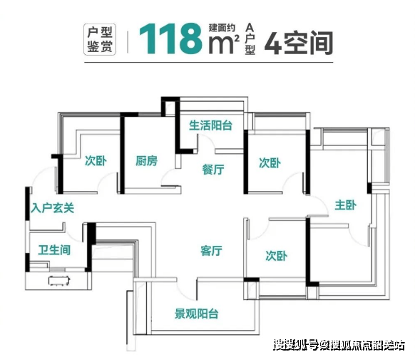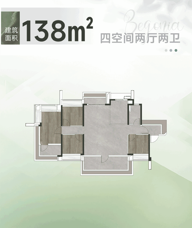 四房两厅两卫:东南单边且南北对流,配备入户花园或玄关,私密性强。
