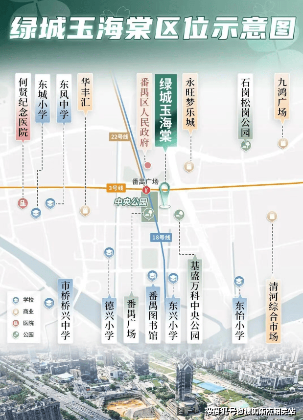 📍 区位优势:项目位于番禺广场CBD核心,毗邻地铁3/18/22号线番禺广场站,5站直达珠江新城,10分钟畅达万博商圈。
