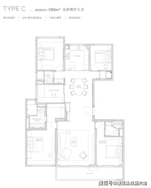合生·缦云广州提供了多种户型选择,面积从145平方米至315平方米不等,包括145/174/190/230/260/264/315平方米等多种规格。所有楼栋均为16-17层的纯板式小高层设计,采用专梯专户的设计理念,保障业主隐私。