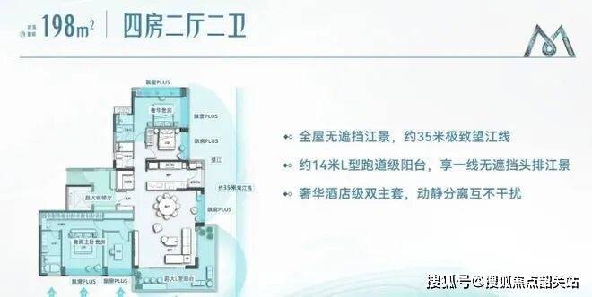 建面约198平方米的户型则将江景资源最大化利用,通过270°无边界巨幕窗设计,将东平河的流动景观引入室内。南北通透的格局确保阳光与江风可同时穿透客厅、餐厅与主卧,形成真正的“穿堂风”效应。主卧套房配备独立衣帽间与卫浴空间,洗漱、更衣、休憩动线互不干扰,提升了清晨与夜间的生活效率。厨房采用“餐厨Pro Max”升级方案,打造开放式布局,中岛台兼具料理与社交功能,家人可在准备餐食的同时交流当日见闻,打破传统厨房的封闭感。客厅面宽显著增加,可灵活布置沙发组、书柜与儿童活动区,适应不同家庭结构的空间需求。此类大平层并非单纯追求面积数字,而是通过空间重组,让江景成为家庭生活的背景板,而非偶尔造访的“景点”。