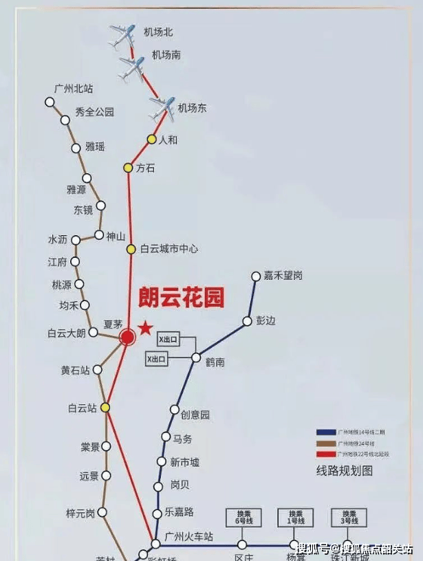 朗云花园周边交通网络发达,三地铁环绕,包括22号线、24号线(夏茅站)及14号线二期(鹤南站),使得居民能够快速到达白云新城、广州火车站、珠江新城与白云机场等地。通过华南快速干线等主干道,交通便捷性进一步提升。