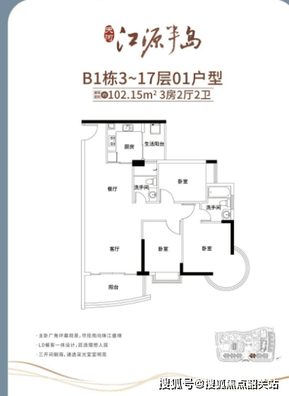 102-107㎡三房两卫户型,是项目的热销户型,定位刚改与改善型家庭,涵盖102㎡东南双面瞰江、107㎡东南向望江两种户型,兼顾实用性与景观优势。其中102㎡户型三开间朝南,可俯瞰约500米江面,主卧拥有270°环幕江景,尽揽南向珠江美景,双阳台设计,生活与景观互不干扰;107㎡户型三开间朝南,可同时俯瞰珠江与金融城景,进深12米,面宽约9.8米,全屋动静分区清晰,L型厨房科学动线,提高空间利用率,适合三口之家或四口之家居住,既能满足家庭居住需求,又能享受江景与城市景观带来的愉悦感;105㎡三房两卫户型,定位高端刚改人群,五开间南向采光,270°景观阳台设计,面宽13米,实现室内多空间采光,约12米环幕阳台,让业主能够臻享环幕江景盛宴,约3.9米阔绰客厅开间,彰显居住格调,适合注重居住品质与景观体验的家庭。