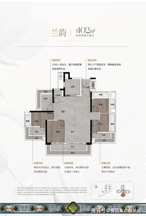 102-128平方米南向三至四房:所有户型均为单边位设计,私密性极佳,使用率超过125%,实际入住后居住体验非常好。
