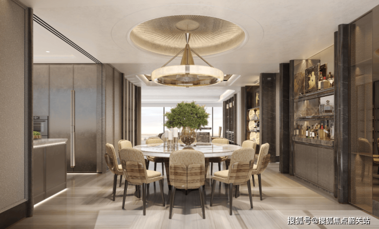 此外还有花园式街区,下楼即享塔尖专属的精致烟火;更有星际车库,金刚砂耐磨地坪、奢石铺装与车到灯亮的智能迎宾系统,从始至终保持着顶奢格调。如果说公区与会所是塔尖生活的面子,那量身定制的室内空间,就是藏着日常温度的里子。Golden 300的室内设计,由上海顶豪保利静安永兴里同款紫香舸MIKS操刀,这支深谙一线城市顶豪精髓的团队,没有直接照搬北上广深的模板,而是针对佛山本土数百组塔尖家庭做了深度调研。设计团队前后打磨了30多版设计图纸,大到空间格局的洄游动线、多代共居的场景规划,小到材质的甄选、收纳的细节,最终形成既对标世界顶豪水准,又饱含岭南在地温度的“岭南式顶豪美学”。项目内部的美学做到了极致适配,而真正能穿越周期的顶豪美学,更在于建筑本身。唯有锚定城市、扎根土地的地标建筑,才能穿越时间,成为一座城市的永恒符号。就像每一座城市,都有一座全球瞩目的天际坐标,对天空的无限接近,是人内心从未停止的向往。这些城市坐标系,是城市的封面,更是城市价值的天花板。