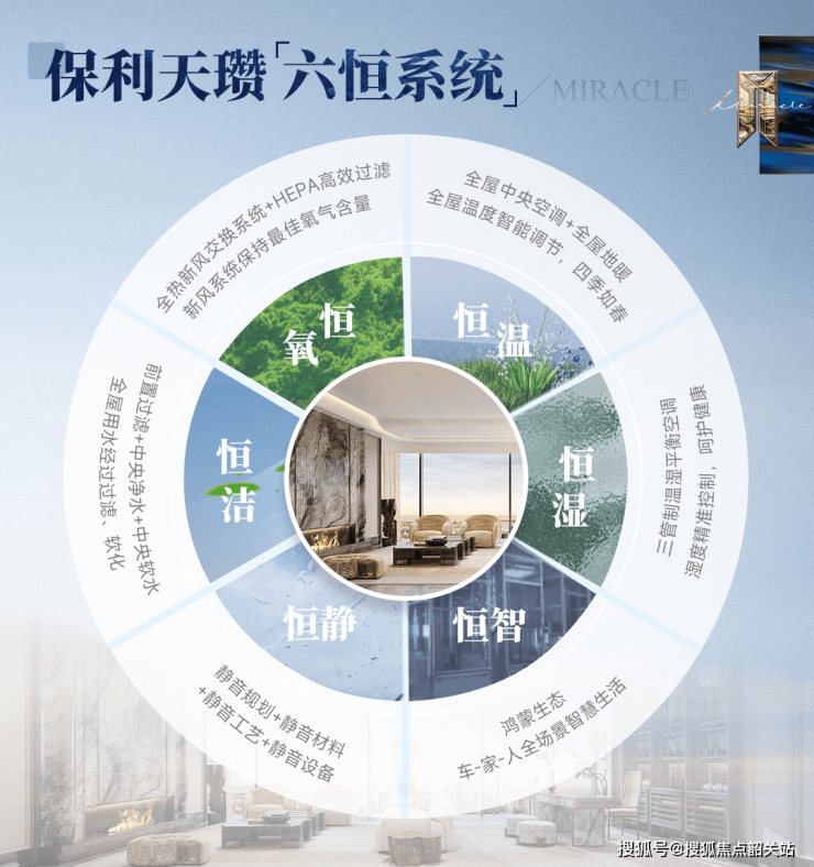 保利天瓒Golden 300的交标升级,是一场「看得见的极致」与「看不见的坚守」的双向奔赴。在看得见的材质与交标上,项目把匠心做到了极致,遍寻全球打造了一座“奢石博物馆”,涵盖稀有木饰面和奢石,让天然的纹理与质感成为空间美学的底色。全屋采用国际一线品牌矩阵,厨电选用欧洲皇家御用的瑞族,洁具五金采用高仪、唯宝等品牌,以耐用、舒适、适配岭南生活为核心。不止于表面材质的极致,Golden 300更把真金白银砸进了那些业主每天都能感受到的底层舒适上,即著名的六恒系统。这套系统从六个维度彻底重构室内居住微气候,将岭南气候的所有痛点从根源上化解,为业主提供一个四季如春、健康舒适的居住环境。