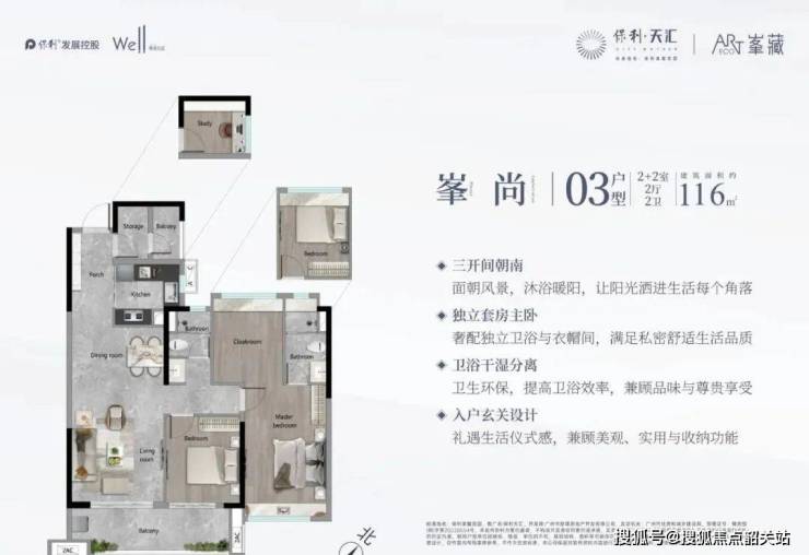 保利天汇在产品上实现产品之跃,虽未集萃岭南文化与东方美学的锦绣八景,但作为约 78 万㎡的改善大盘,涵盖多种业态,产品丰富,在售 99-218㎡户型,包括平层四房、双层复式及豪宅大四房,独梯独户设计提升私密性。