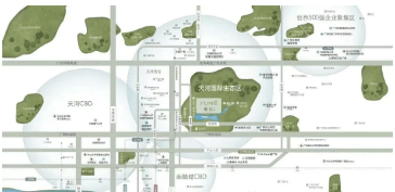 项目所处的天河国际生态区拥有约 71 万平方米城市林海和 2 万平方米月亮湖,每立方厘米高达 3000 多个负氧离子,形成市中心罕见的 “天然氧吧”。社区独创 3.4 万平方米 “折叠园林” 体系,巧妙融合山林、湖畔景观与台地园林,并通过 “星际云廊” 串联全龄活动空间,为居民营造出一个亲近自然、舒适宜人的居住环境,让业主在繁华都市中也能享受诗意的栖居生活。