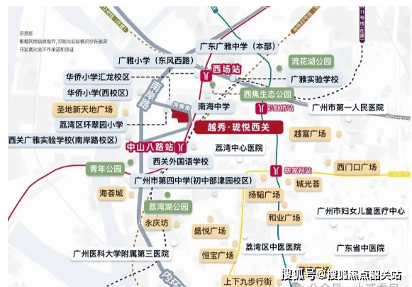 医疗配套:直线距离约 3KM 内汇集荔湾中心医院、广州附医华南医院、广州医科大学附属第三医院等优质三甲医院,为业主的健康提供坚实保障。