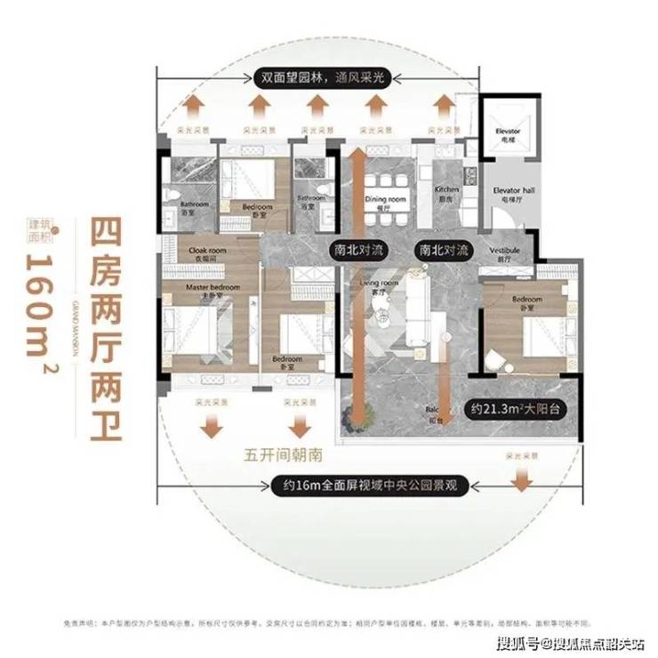 臻选142㎡公园头排大平层:该户型采用了极致的板式设计,2梯2户布局,整栋仅30席,专为高知圈层定制。