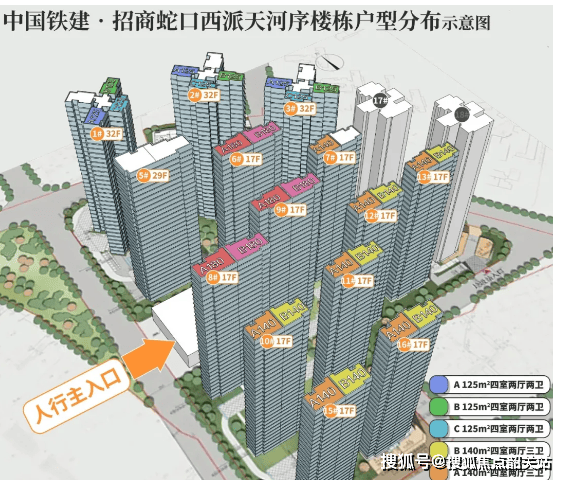 西派天河序由中铁建与招商蛇口两大央企联合开发,实力雄厚,品质与交付有保障。项目前身为梅花铝厂地块,2023 年经多轮竞价后被中铁建拿下,折合楼面价 4.19 万 /㎡(扣除配建后达 5.27 万 /㎡)。项目总占地面积 76904.81㎡,总建筑面积 142416㎡,容积率 3.0,绿化率 27%,规划 16 栋 17-32 层住宅,共 1160 套货量,总户数 744 户,梯户比为 2 梯 2 户 / 2 梯 3 户板楼、2 梯 4 户塔楼,打造低密舒适社区。小区配备 1291 个停车位,车位充足;实用率高达 100%-110%,空间利用率优势明显,还是广州首个 “智慧 + 品质” 社区,以前瞻性设计提升居住体验。