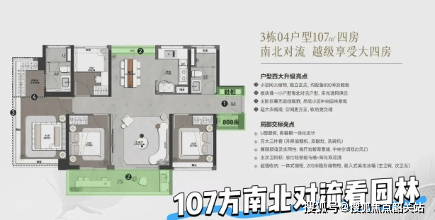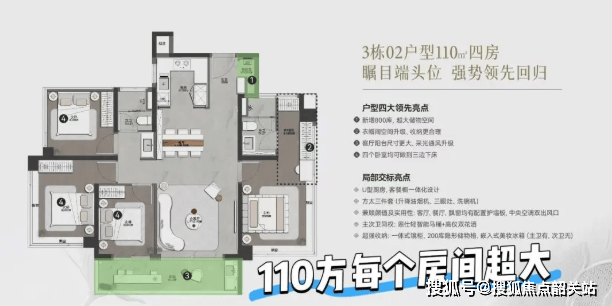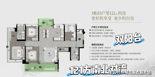 超新规户型设计:户型使用率超过125%,单边位设计提升了居住私密性和舒适度。