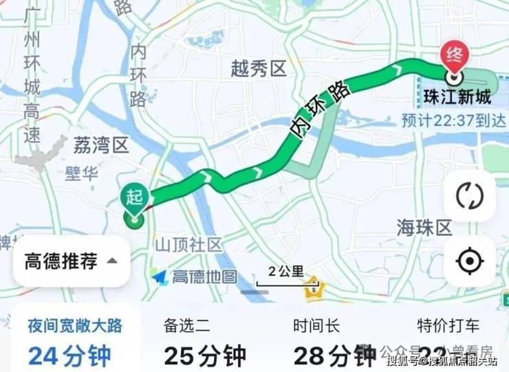 自驾去珠江新城:出来小区,上花蕾路转洲头咀隧道转内环,全程13公里,耗时24分钟。