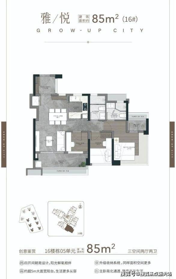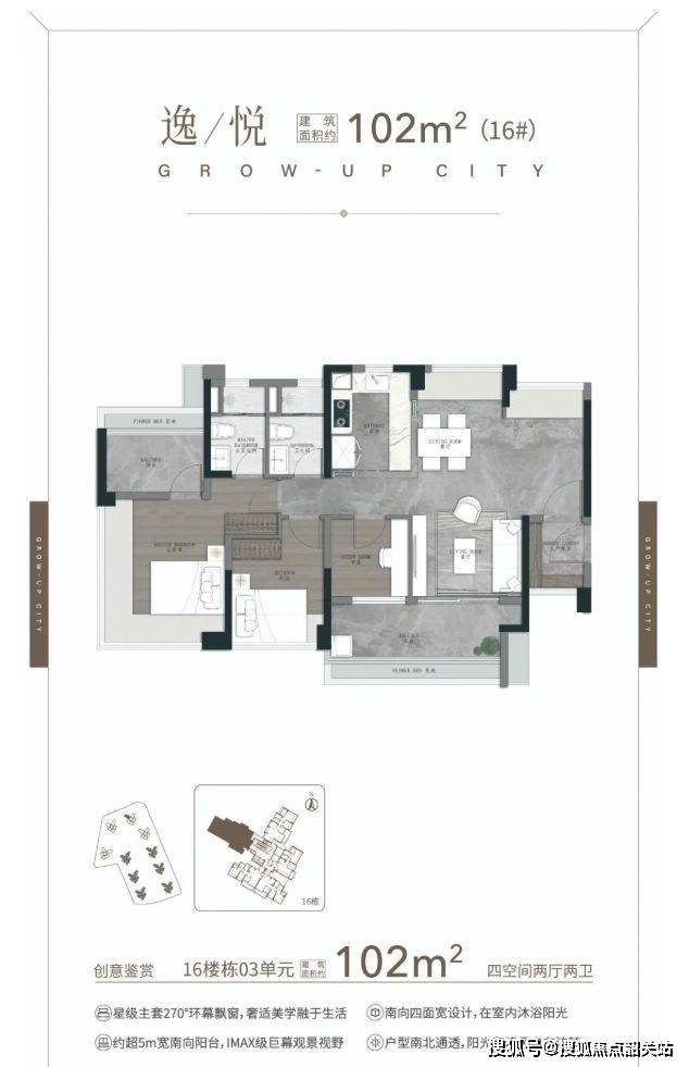 该户型为罕见四面宽设计,三卧室朝南,拥有超11米景观线,阳光可直射卧室、客厅、餐厅,采光极佳。精细化收纳设计是亮点,约10米收纳墙可容纳全家人的衣物、玩具、书籍,空间利用率极高。适合新婚家庭或三口之家,总价约260万起,性价比超高。