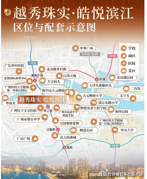 教育与医疗资源同样亮眼。教育方面,项目周边有海印南苑幼儿园、名都幼儿园等学前教育资源,小学对口大元帅府小学、滨江东路小学等名校,初中涵盖五中滨江学校、南武中学等百年学府,且海珠区已明确今年实现公办学校 100% 集团化管理,项目所属招生组别竞争力强(具体以教育部门文件为准)。医疗方面,广医一院、广医二院、珠江医院、海珠区妇幼等优质医疗资源环绕,形成 “五分钟生命线”,3 公里内可快速抵达海珠、越秀多个重点医疗配套,为业主健康保驾护航。