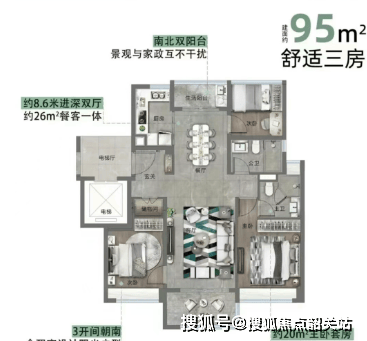 越秀天悦金沙在产品设计上兼顾多样性与实用性,以新规户型理念打造多元居住空间,搭配超高得房率,实现居住体验的优化升级。项目产品矩阵丰富,涵盖小高层与超高层多种业态,户型区间为95-200㎡,涵盖三房至四房及底叠产品,具体包括小高层95㎡/125㎡三四房、超高层96㎡三房、125㎡/141㎡四房,以及150-200㎡底叠三四房。在空间利用上,项目整体得房率高达86%,其中95㎡户型得房率更是达到87%,远超同类型项目平均水平,实现了空间利用率的最大化。同时,小高层产品采用低密板式设计,搭配专梯入户配置,进一步提升了居住的私密性与舒适度;当前主推的1-8栋均为现房,包括47层超高层、11层小高层及17层业态,即买即住,有效降低了购房等待成本与风险。