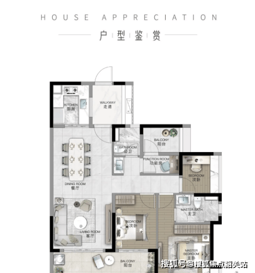特色设计:① 豪华主卧套设计,配备独立卫生间、衣帽间,同时拥有超大270°转角飘窗,采光充足,视野开阔,可俯瞰社区园林景观,提升居住舒适度与尊贵感;② 超大赠送面积,南向景观阳台可改造为房间,面积赠送一半,极具性价比,有效提升空间利用率;③ 三开间南向采光,约9.8m大尺度南向采光面,客厅、两个卧室均朝南,确保室内采光充足,通风优良,避免潮湿;④ 所有房间均带飘窗,增加室内使用空间,同时提升户型的观赏性;⑤ 超大方厅设计,动静分明,客厅与卧室分区明确,兼顾休闲与休息需求。