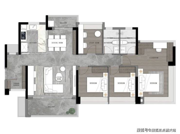 126㎡户型:首次推出的“大横厅”设计,动静分离,玄关与主卧南北对流。
