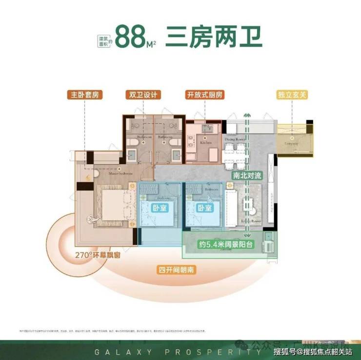 约88㎡三房两卫;