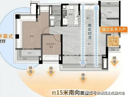 高性价比户型设计:采用“无边界飘窗”设计,将飘窗真正变成实用空间,使卧室空间更大更舒适。同时,“V字型”板楼设计实现了更大的面宽和更好的通风效果。