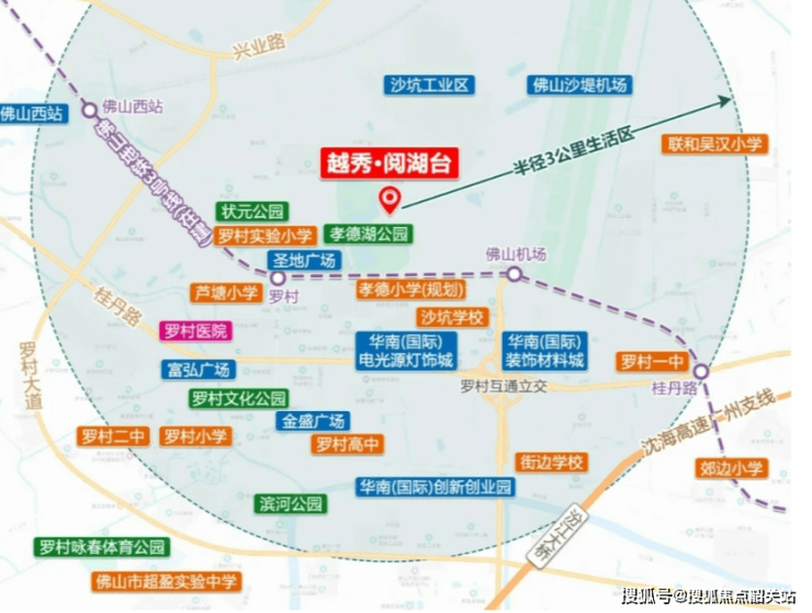 越秀·阅湖台距离佛山地铁3号线罗村站(在建)仅约800米,步行即可到达。通过地铁网络,居民可以轻松便捷地前往禅城、桂城等地。此外,自驾出行也非常方便,经由桂丹路-海八路,可快速抵达千灯湖等重要区域。整体来看,项目周边汇聚了“2高铁2轻轨4地铁”的立体交通网,包括贵广高铁、南广高铁、广佛肇城际、广佛环线等。
