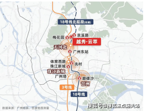 越秀·云萃地处广州市白云区沙太路以西,位于天河与白云交界处,距离珠江新城直线距离约5公里。项目周边交通网络发达,步行即可到达18号线京溪路站,通过地铁无需换乘即可抵达琶洲、珠江新城、天河北等核心商圈。自驾出行也十分便利,可通过广州大道或沙太路快速到达珠江新城CBD,极大地方便了居民的日常通勤。