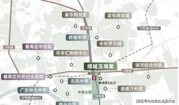 项目为地铁上盖物业,无缝衔接番禺广场站E口,汇聚3号线、18号线、22号线及规划中的17号线。18号线和22号线为高速地铁,时速达160公里,30分钟直达珠江新城、琶洲及南沙横沥等核心区域,自驾可通过亚运大道及番禺大道快速通达全城。双轨交汇不仅带来便捷的通勤体验,也提升区域居住价值,使居民能够在短时间内连接城市主要商业、办公和生活圈,实现高效便捷的现代都市生活。