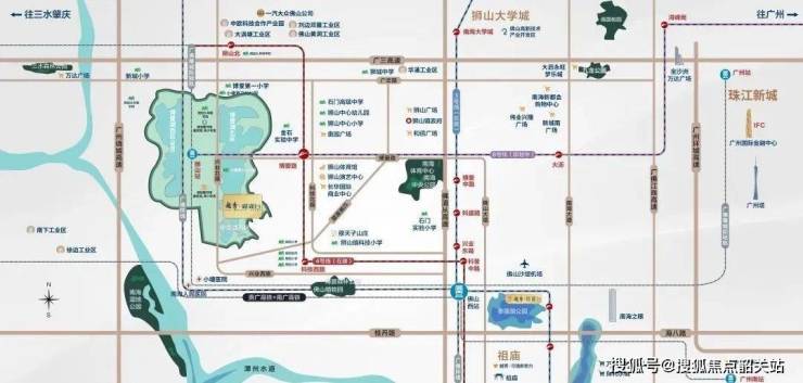 越秀御湖台位于经济强镇佛山狮山博爱湖畔,区域内人才密集、经济活跃。狮山镇连续多年GDP突破千亿,拥有丰富的企业资源和创新产业,吸引大量高素质人才入住。交通方面,项目四横三纵多条主干道纵横交织,包括广三高速和广州绕城高速等,为自驾出行提供便利。轨道交通方面,距离地铁4号线、8号线博爱湖站约800米,近城轨狮山站及佛山西站,20分钟可达广州南站,实现大湾区一小时生活圈无缝对接。完善的交通网络极大提升了项目的通勤效率和区域连通性,便于业主享受广佛区域繁华资源。