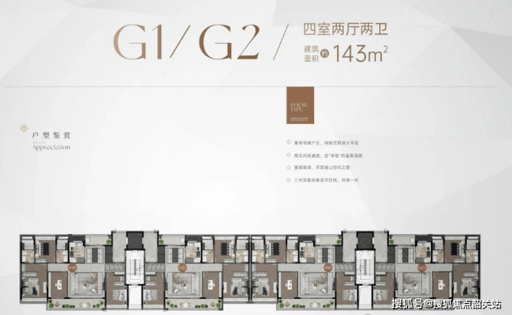 洋房:全部为143平方米的大平层设计,两梯两户板楼结构,私密性强。