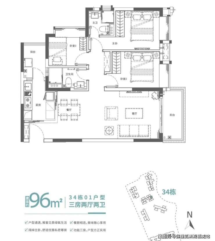 34 栋悦景楼座:此次广地花园・观灏加推的 34 栋悦景楼座,面积段涵盖 86m²、96m²、100m² 悦景三房。86㎡南北通透三房,南北对流,采光通透,客厅直通南向阳台,布局方正实用;86㎡精致水景三房,经典竖厅设计,客餐一体通厅延伸至阳台,可观水景;96㎡滨水舒适三房,餐客厅一体化连通观景阳台,卧室规划大面宽飘窗;100㎡瞰景大三房,拥有约 7.3 米超宽阳台,南向主卧尊享独立明卫与超大观景飘窗。