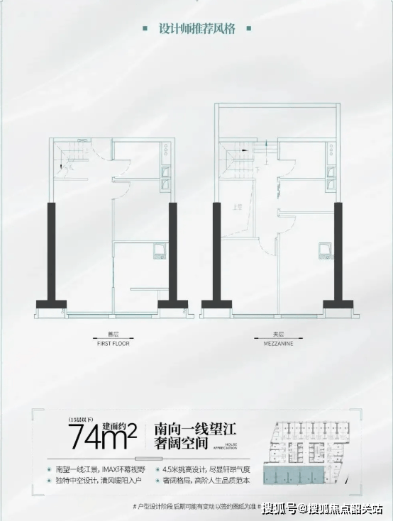 建面约74㎡南向一线望江LOFT(可明火)