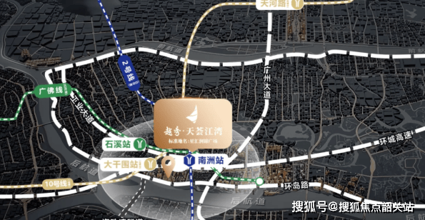 三条地铁线路环绕:2号线南洲路站、广佛线石溪站、10号线大干围站(在建中),距离项目均不超过1.3公里。