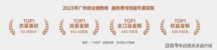 国企龙头越秀地产,中国企业500强,2021-2023年连续三年荣获广州房企销售金额TOP1。(数据来自克而瑞)