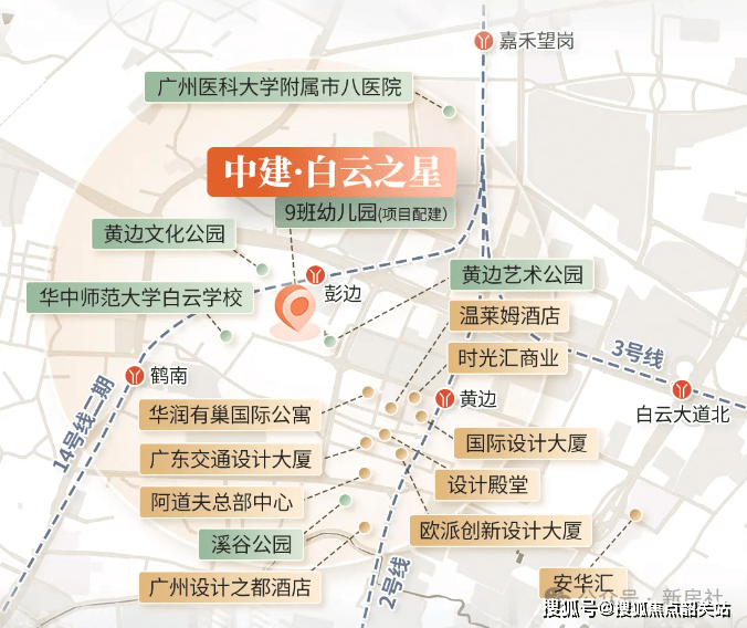 交通方面,中建·白云之星具备显著的立体化优势。项目距离2号线黄边站约800米,近在建的14号线二期鹤南站及彭边站约800米,三条地铁线路形成白云主轴快速通达的轨道网络。居民可便捷前往白云新城、江南西、广州南站等核心区域,实现高效通勤。同时,项目紧邻106国道、华南快速路及空港大道,自驾前往白云新城及珠江新城仅需约10分钟。