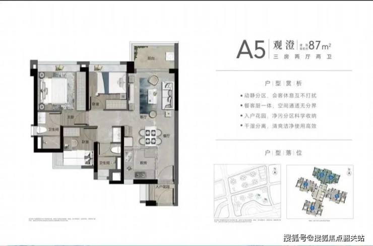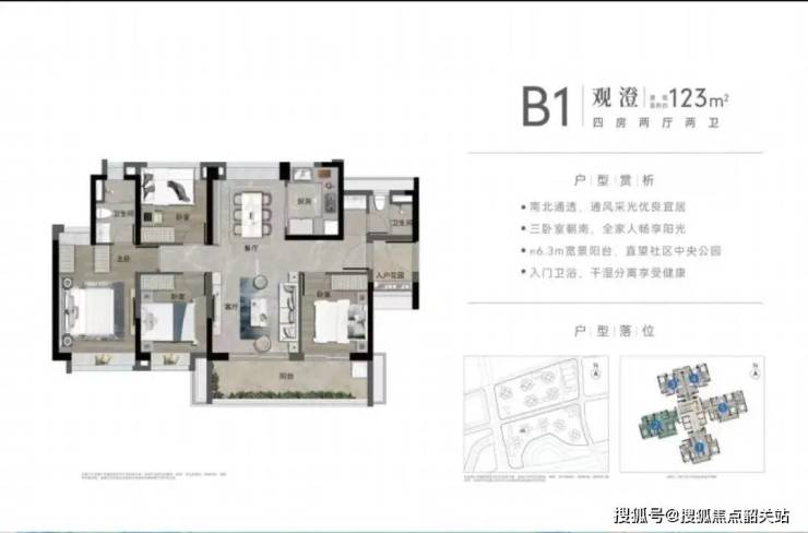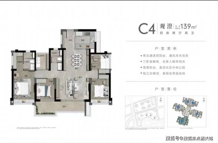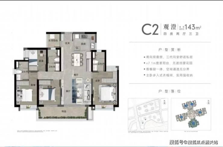 在售“观澄组团”,户型为87-143平三四房,户型图如下。