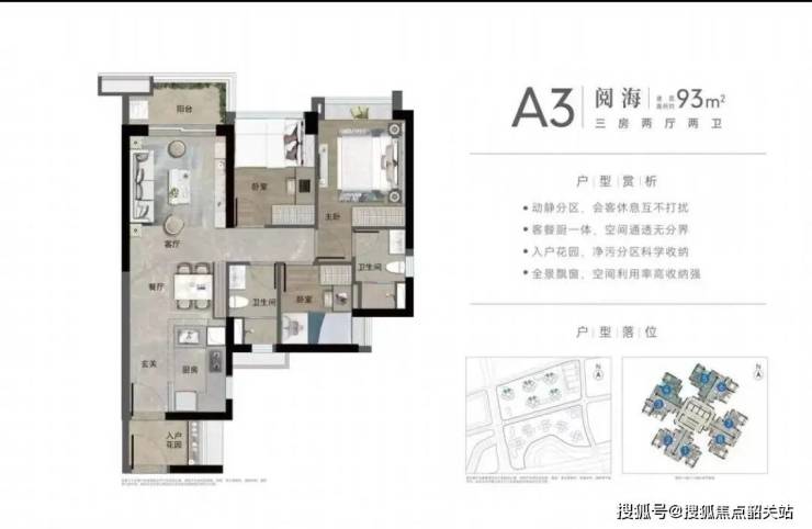 在售“阅海组团”,紧邻公园,紧邻学校、酒店,户型涵盖93㎡三房两卫。