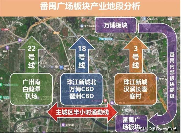 该楼盘位于番禺区府核心区域,靠近番禺广场,周边拥有大量政府单位、商业设施和写字楼,是广州南部的重要交通枢纽之一。四条地铁线(18号线、22号线、3号线以及规划中的17号线)在此交汇,使得前往珠江新城、琶洲等主要商务区变得极为便捷。
