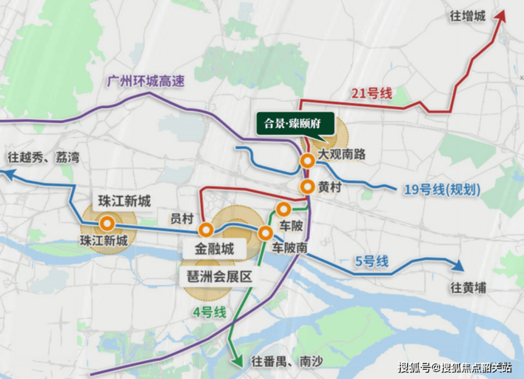 项目周边交通体系完善,实现五维立体出行。自驾出行方面,可便捷抵达珠江新城、智慧城及金融城核心片区,通过白云机场及广州南站实现城市间快速互联。轨道交通方面,地铁21号线智慧城站约1.5公里,是全球首座AI智慧车站,实现刷脸过闸与语音购票的便利体验;地铁4号线黄村站约2公里,贯穿广州南北主干道;规划中的地铁19号线大观南站全长约34.2公里,连接广佛两地并覆盖通道。双城际轨道包括在建的广佛东环线及穗莞深城际轨道,直通白云机场及广州南站枢纽,形成高效通勤和商务出行网络,确保社区业主在核心商务及生活区域间通行顺畅。
