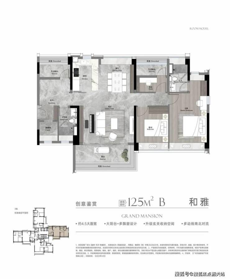 景观阳台尺度提升到面宽近9米,进深约2.4米。延长阳台拓宽套房,更能满足小孩年岁增长后,对私域空间愈发强烈的渴求。