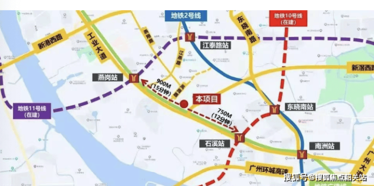 地铁广佛线/11号线(在建)燕岗站:距离项目约900米。广佛线已运营多年,可快速连接海珠区、荔湾区并直达佛山金融高新区,实现广佛同城生活。而11号线作为广州首条市区大环线,其战略意义在于“串联所有中心区”,未来可一线换乘通达琶洲、金融城、白鹅潭、广州火车站、广州东站等全市核心枢纽与商务区,被称为“换乘之王”。