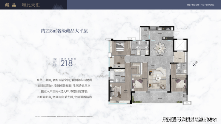 ✅ 126㎡四房两卫:LDKG一体化设计,6.8米超长阳台,可改造为茶室/健身区;