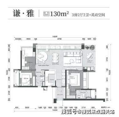 144 平户型:四个卧室均朝南,客厅设有约 5.2 米的飘窗,采光通风俱佳。靠近客厅的书房可灵活改造,若不需要可打掉以扩大客厅空间,满足家庭不同阶段的使用需求。