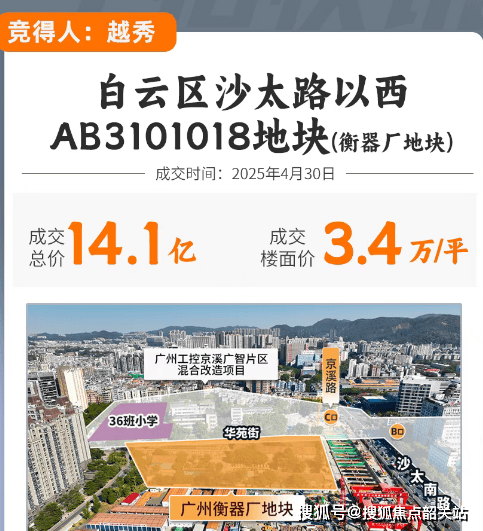 在广州城市中轴发展格局下,白云区与天河区交界的核心板块,一直是承接天河外溢改善需求的黄金区域。2025年4月30日,白云沙太路以西衡器厂地块开拍,凭借前期越秀·云悦的爆红铺垫,该地块吸引了越秀、中海、金茂等9家知名房企激烈角逐,最终越秀地产经过26轮竞价,以14.15亿总价将其收入囊中,折合楼面价33624元/㎡,扣除配建后可售楼面价约3.8万/㎡,打造改善型项目——越秀·云萃。作为越秀·云悦的超越版,项目以白云首个“0飘窗”落地、18号线地铁上盖、对口省一级京溪小学等核心亮点,再加上近期加推6栋新品的红利,成为白云改善市场的焦点。本文将从项目概况、楼栋户型、周边配套、价格动态、优缺点总结等多维度,进行全面深度解析,聚焦核心价值,为购房者提供专业客观的置业参考,助力精准把握置业窗口期。