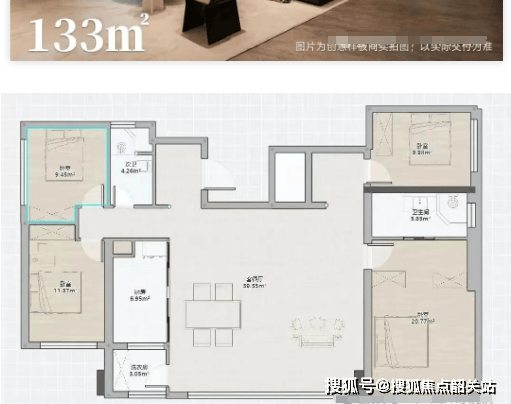 133㎡四房:创新“四叶草+横厅”布局,客厅开间达7.4米,无需打通即可媲美170㎡大平层;