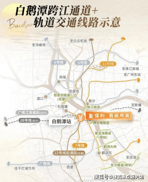 四条高能级轨道在此交汇,使白鹅潭成为主城区唯一四轨枢纽,未来还将通过多条过江隧道强化与海珠、越秀的连接,真正实现“半小时畅达湾区核心”。