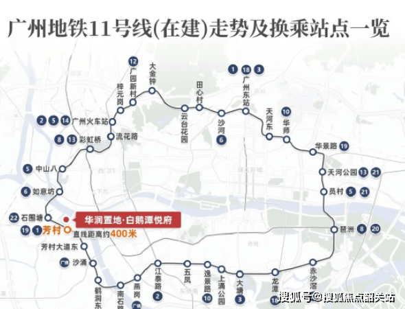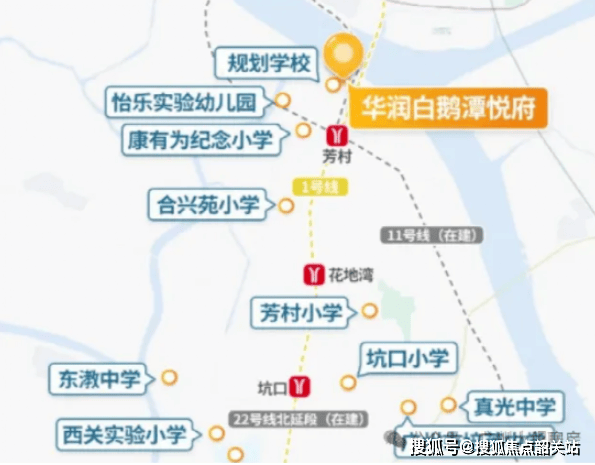 交通是衡量地段价值的关键维度。白鹅潭悦府距离地铁1号线芳村站仅约400米,未来将实现1号线、11号线(土建完成99%)、22号线(二期建设进度68%)及规划中的28号线四线交汇,形成真正的白鹅潭TOD枢纽。